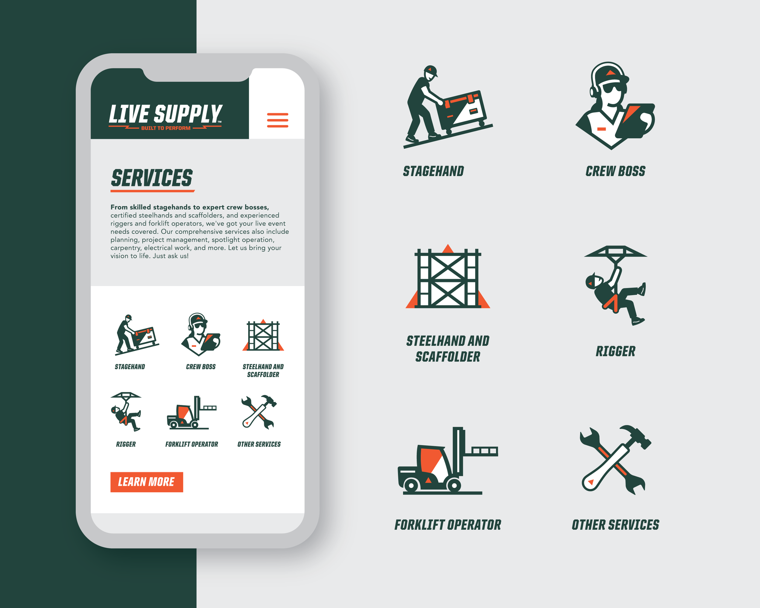 Live Supply is a renowned name in the live events industry, specializing in rigging services for shows and live events. They take pride in their diverse and highly skilled crew, which includes carpenters, electricians, riggers, climbers, and more, all CPR certified. With a light-hearted and hard-working approach, they're known for their dedication to quality and safety, as well as their ability to have fun while doing what they do best. Despite their stellar reputation, Live Supply faced challenges in retaining their exceptional employees and needed a brand that reflected their unique culture and values.