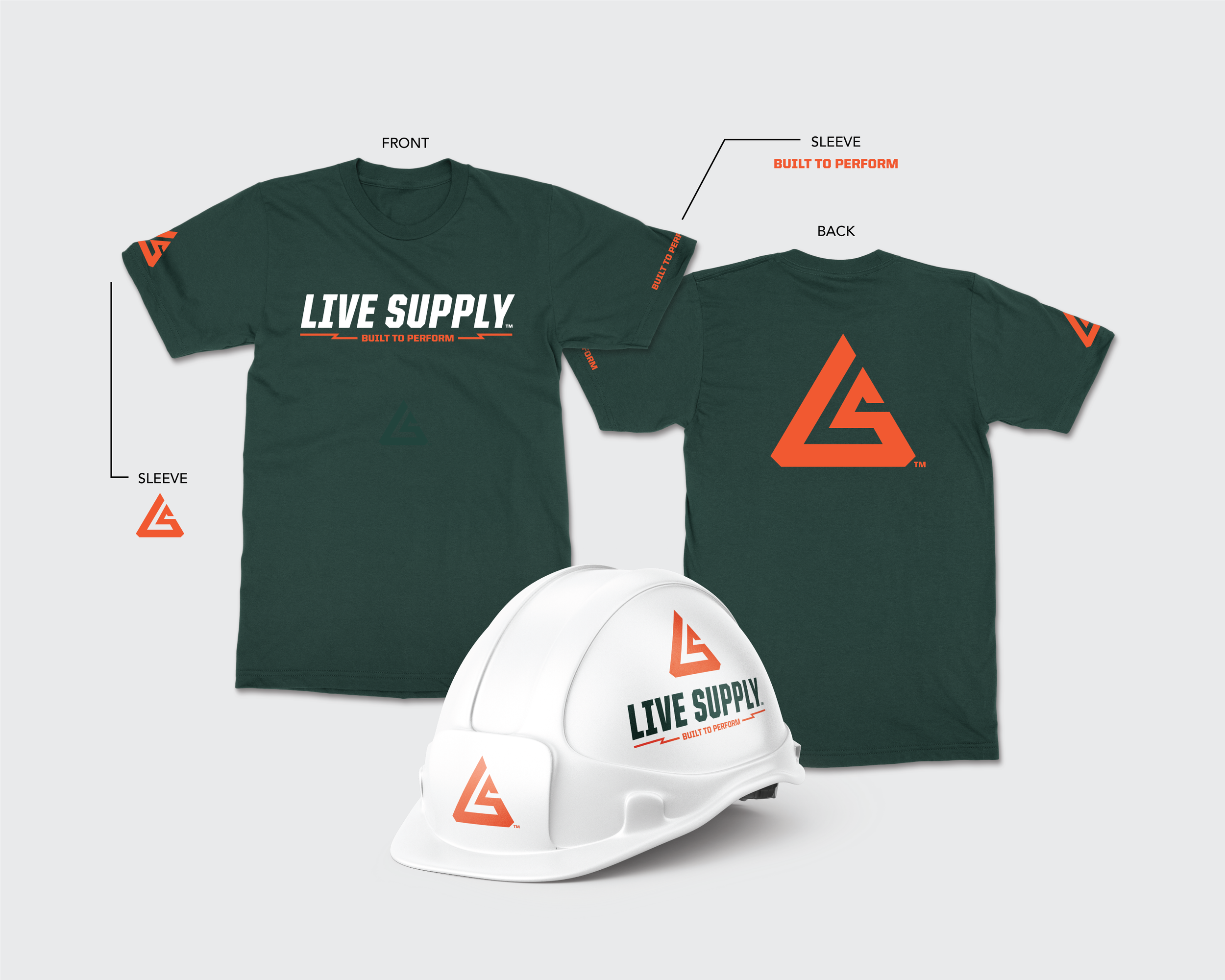 The logo we developed is a clever fusion of form and function. The apex icon is crafted from the letters 'L' and 'S,' signifying Live Supply's aspiration to reach the highest levels of design and execution. The rugged, clean, and strong type design communicates quality and reliability. The choice of safety orange underscores their unwavering commitment to safety, while the grounded green color conveys approachability and motivation. The tagline, "Built to Perform," encapsulates their dedication to delivering professional, safe, and durable stage crew services.